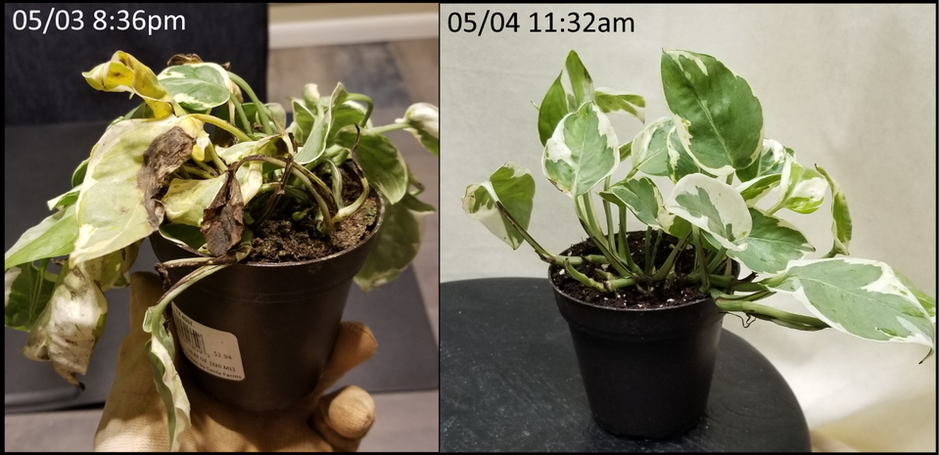 Izgleda li tvoja biljka kao ova s lijeve strane, vrijeme je da ju presadiš u novu posudu kako bi imala više mjesta. Prije nego dobije novi dom, bitno je da lagano odstraniš višak korijenja i to ručno kako bi biljka mogla bolje apsorbirati vodu i hranjive tvari. Bitno je da to radiš veoma pažljivo, kao da odmotavaš špagu kako korijenje ne bi slomila.