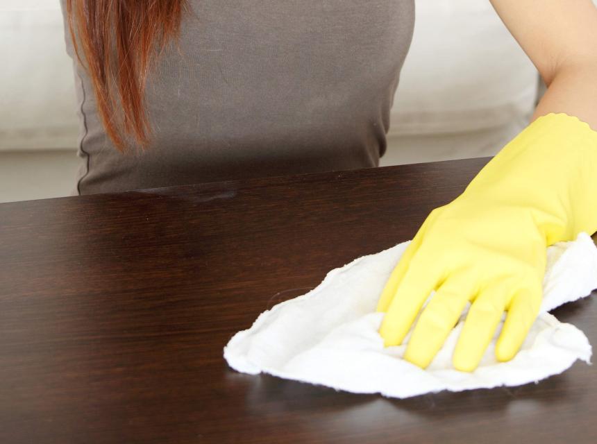 Pomiješajte pola šolje maslinovog ulja i pola šolje alkoholnog sirćeta, u mješavinu močite pamučnu krpicu te je iscijedite pa krpicom dobro istrljajte drvenu površinu.