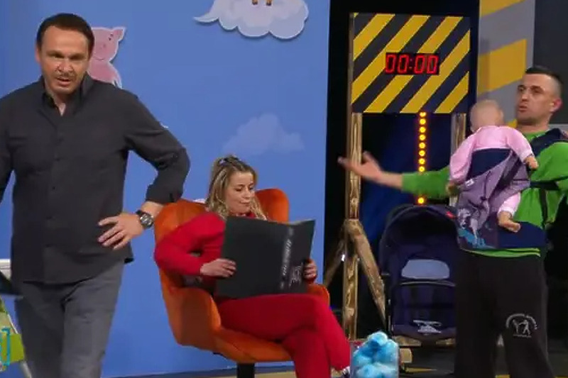 "Vaši će partneri u ruci držati bebu i morat će pospremiti sobu. Dakle, pospremiti razbacane igračke u kutiju odgovarajuće boje, pobacane vatice u posudu odgovarajuće boje i objesiti odjeću na vješalice odgovarajuće boje, a moraju složiti i pelene", najavio je.