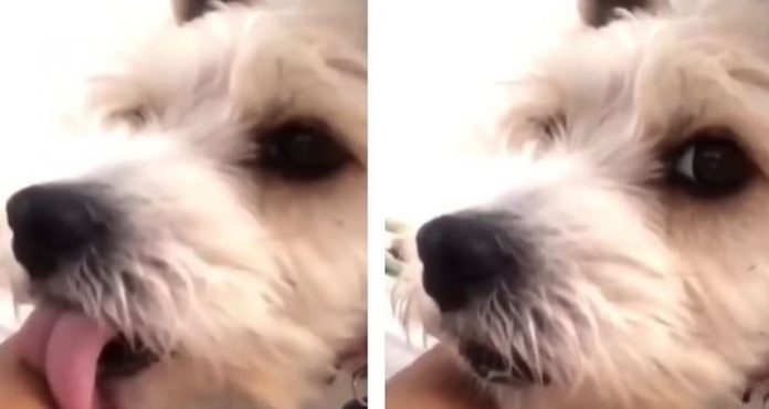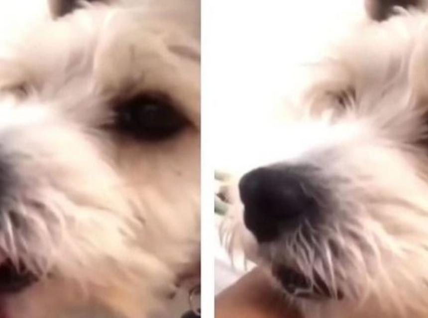Na snimci se može vidjeti kako pas liže vlasnicu u igri, ali čim ju je začuo kako kašlje, izbezumio se i uputio joj zabrinut pogled.