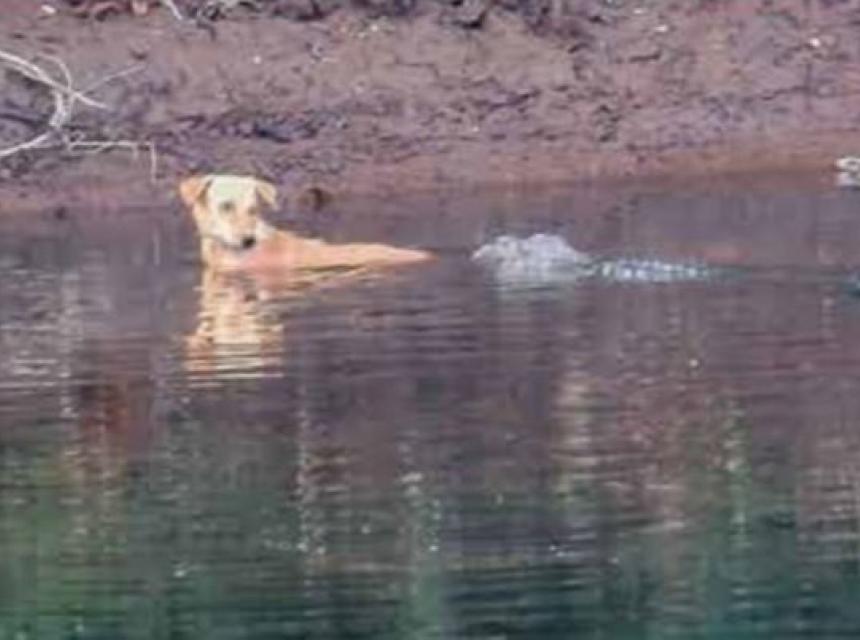 Pas je, naime, pobjegao od čopora divljih pasa i bacio se u vodu. Ubrzo su se pojavila tri krokodila, no imali su dobre namjere - gurali su ga njuškom prema mjestu koje je udaljeno od čopora pasa. Oni su ga, naime, čekali na obali misleći da će se odmah vratiti, ali su reptili spriječili njihove namjere. Pas je na kraju izašao iz vode dalje od tih pasa i otišao svojim putem.