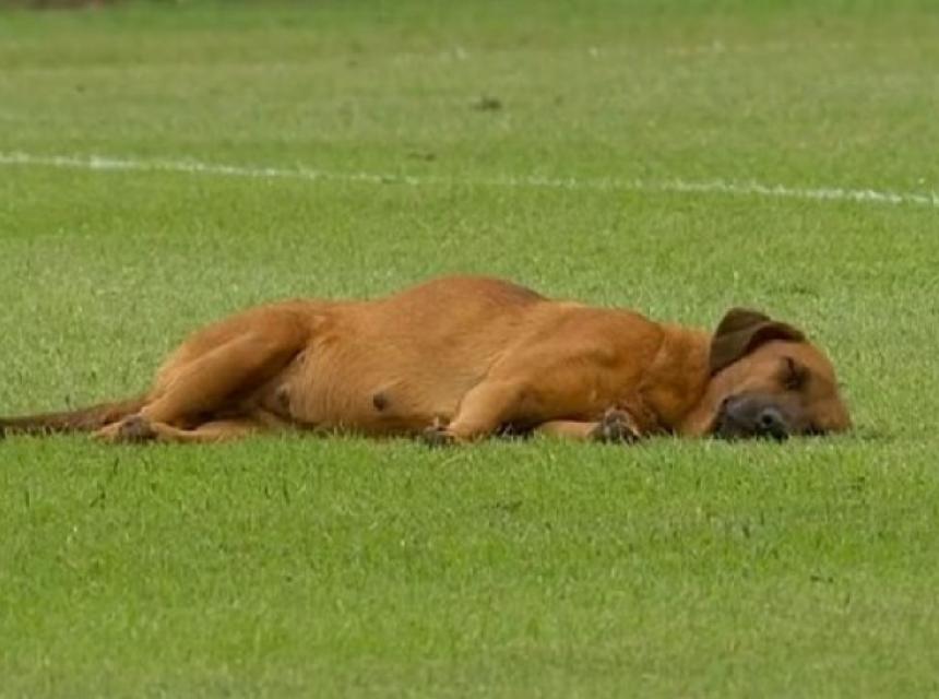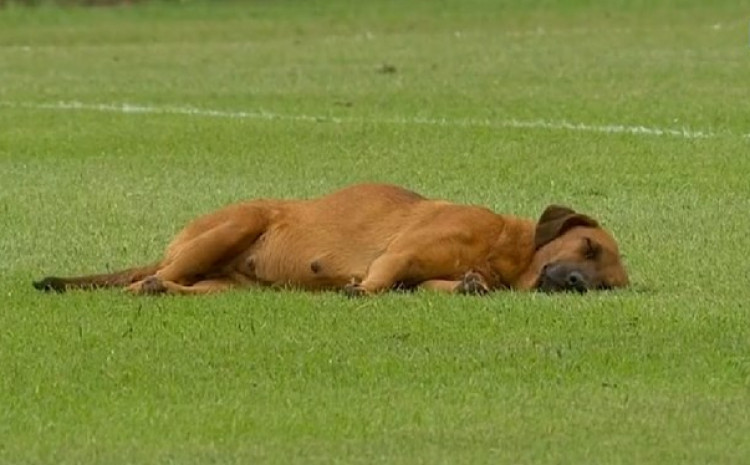 Naime, jedan pas je utrčao na teren i zaspao na travnjaku. Sudija nije mogao početi utakmicu dok se pas nije probudio i napustio teren.