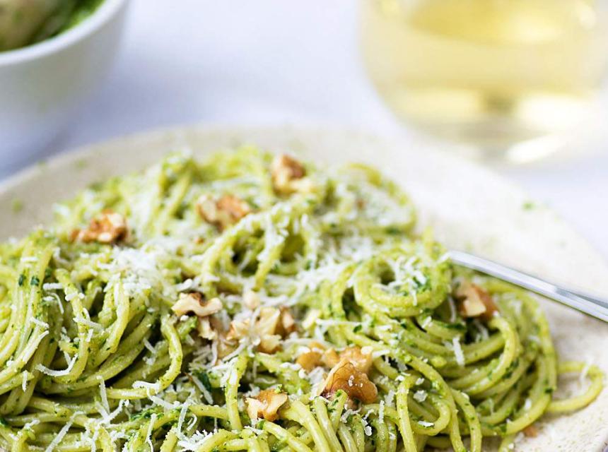rukolu i kuhajte 2 minute. Procijedite i ohladite pod mlazom hladne vode. Dodajte pola količine maslinovog ulja i usitnite sa štapnim mikserom.