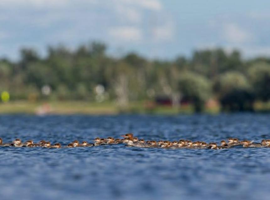 Mama patka i 76 malih pačića koji je prate su nevjerovatan prizor, a sve je foto-aparatom uhvatio fotograf Brent Cizek na jezeru Bemidji u Minnesoti.