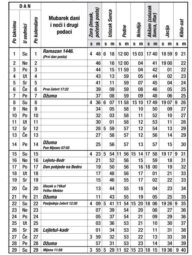 Kompletna vaktija za Sarajevo. islamskazajednica.ba