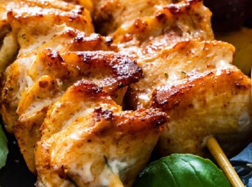 Meso nanižite na štapić, pa napravljene ražnjiće pecite u zagrijanoj i nauljenoj gril tavi.