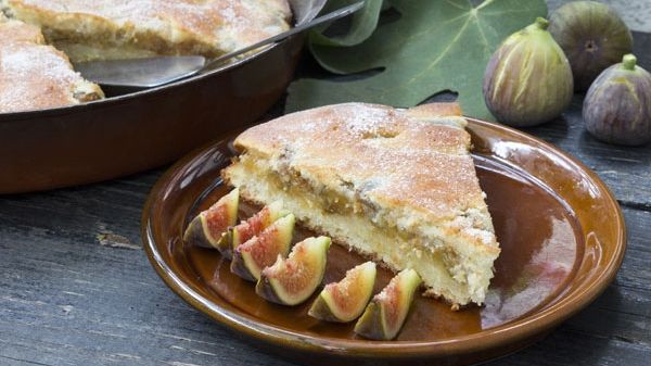 2. Dvije trećine tijesta istanjite oklagijom i stavite na radnu površinu, a jednu trećinu ostavite za vrh pite. Pomiješajte mljeveni rogač s džemom od smokve i medom, fil razmažite po tijestu, pitu pokrijte preostalom jednom trećinom tijesta pa poredajte suhe ili svježe smokve. Pecite 20 minuta na 220 stepeni.