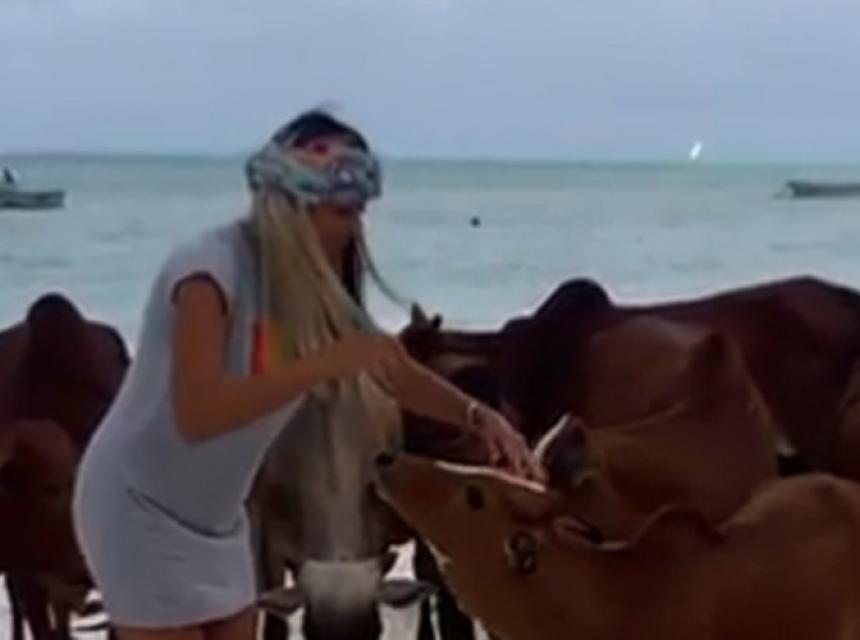 "Mama, danas me udarila krava. 'Gde te bre udarila krava?' - Pa na plaži. 'Na plaži te udarila krava?' - Da nemam klip, mislila bi da je lažem", napisala je pjevačica.