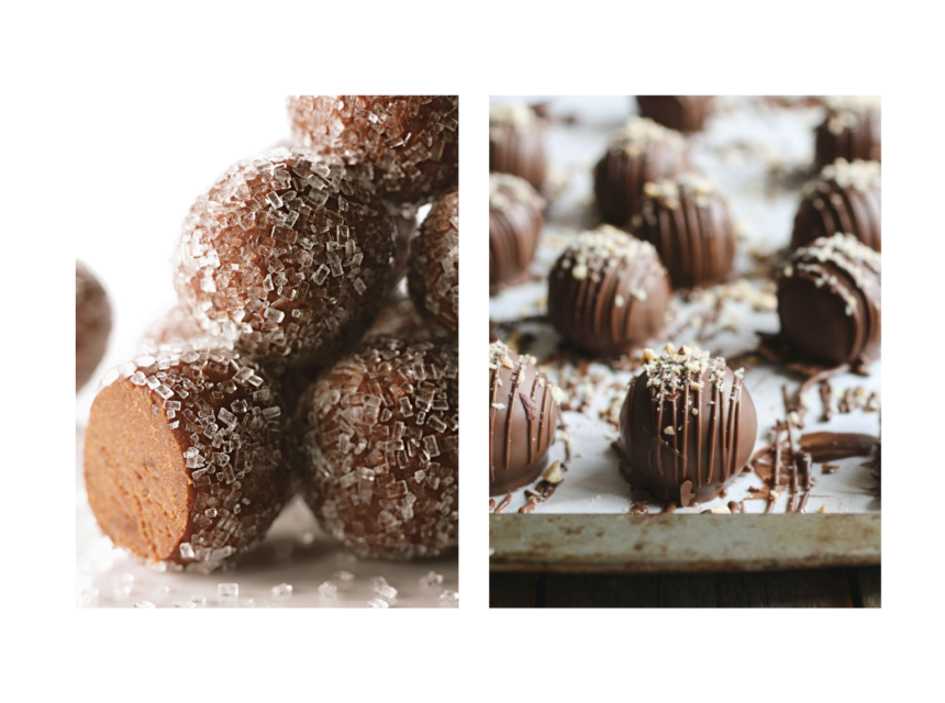 Hurmama odstranite košpice, nasjeckajte ih i stavite u 100 ml vode, pa ostavite minimalno pola sata, što duže stoje to je bolje. U blenderu smiksajte bademe i lješnjake i zobene pahuljice. Dodajte sve ostale sastojke i hurme. Dobro izblendajte i smjesu ostavite u frižideru na pola sata da se sve malo stegne. Oblikujte bombice, ako želite stavite u sredinu lješnjak i uvaljajte u kokosove mrvice. Otopite čokoladu sa maslacem i kad se malo prohladi umačite svaku bombicu i odlažite ih na papir za pečenje da se osuše, tj. da se čokolada stegne…