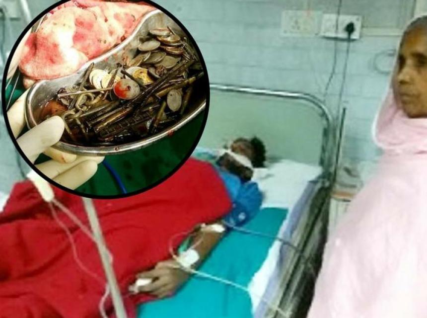 Maksud Khan (35) primljen je u bolnicu Sanjay Gandhi u indijskom gradu Satna, gdje su mu liječnici obavili endoskopiju. U želucu su mu još pronašli i nokte, komadiće stakla, žilete i kamenje.
