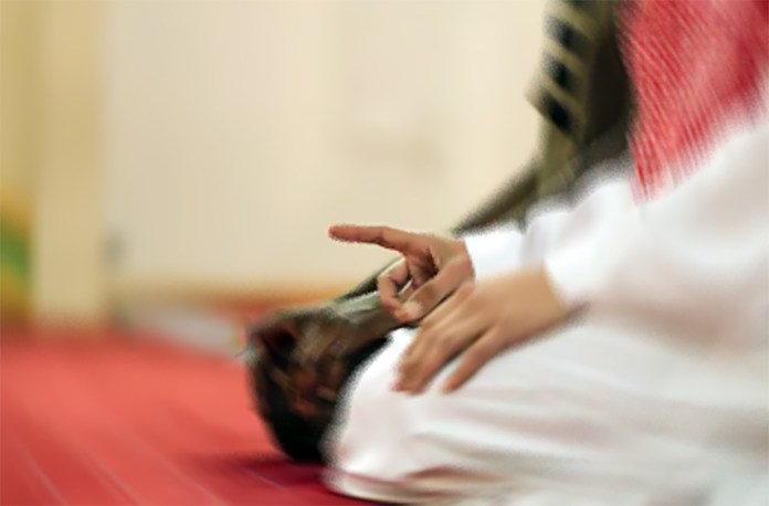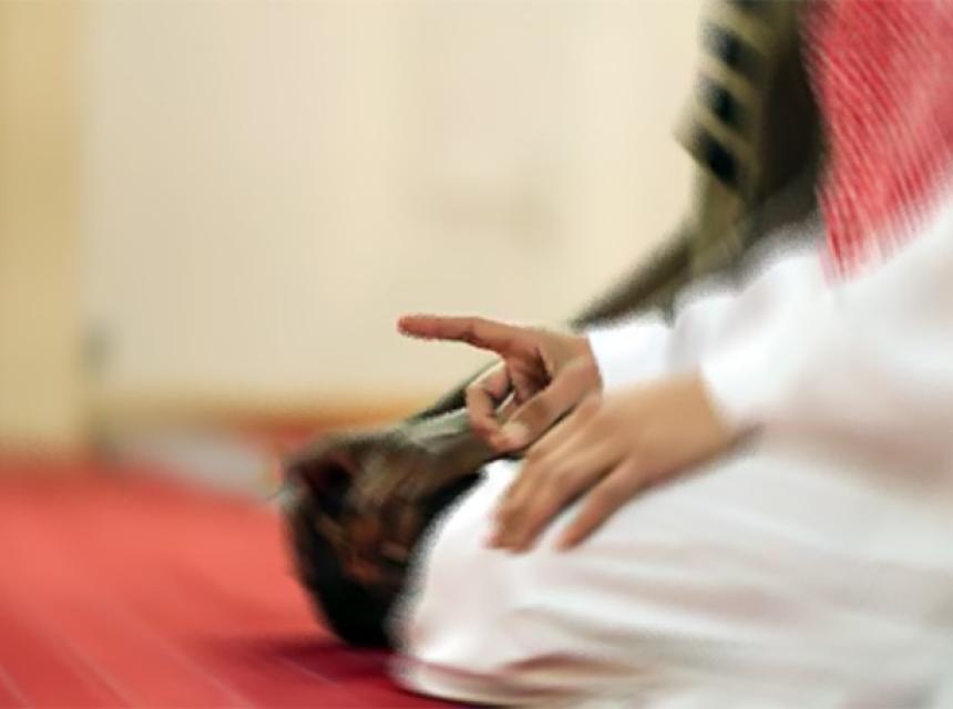 Prvi način: da spoji vrhovima prstiju između srednjeg prsta i palca i podigne kažiprst, kako je došlo u hadisu kod imama Muslim od Zubejra ibnul Avama, radijellahu anhu, da je rekao: „Kada bi Allahov Poslanik sjeo (na tešehudu) stavio bi desnu ruku na desnu butinu a lijevu ruku na lijevu butinu. Pokazao bi kažiprstom a palac sastavio sa srednjim prstom.“