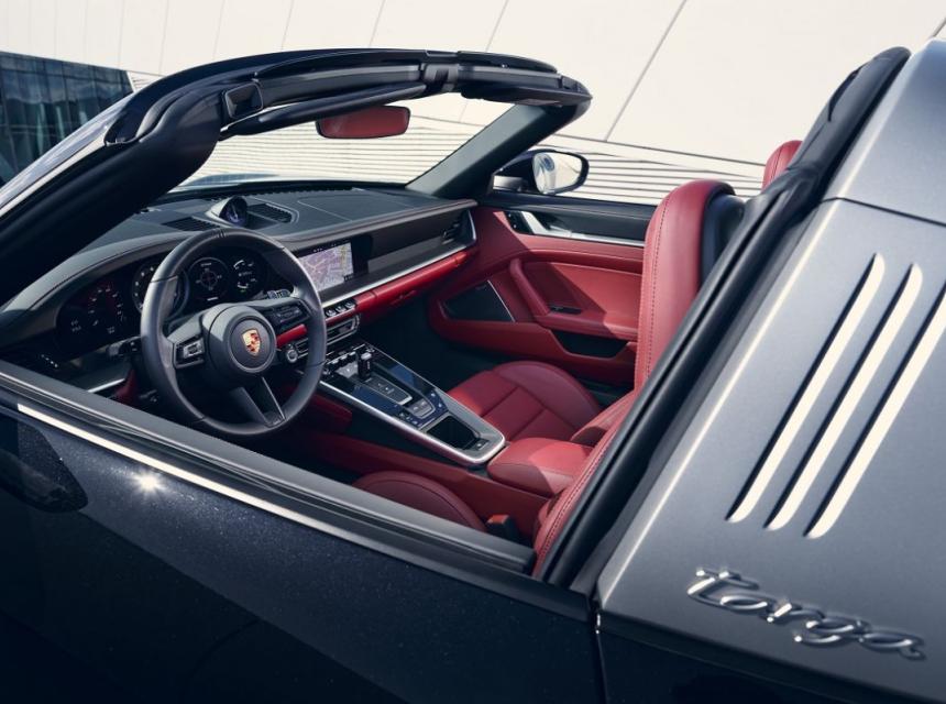 Targa verzija sada ima moderni mehanizam pokretanja središnjeg dijela krova koji Porsche 911 u 19 sekundi pretvara iz coupea u cabriolet, a dio tradicije je srebreni B-stub.