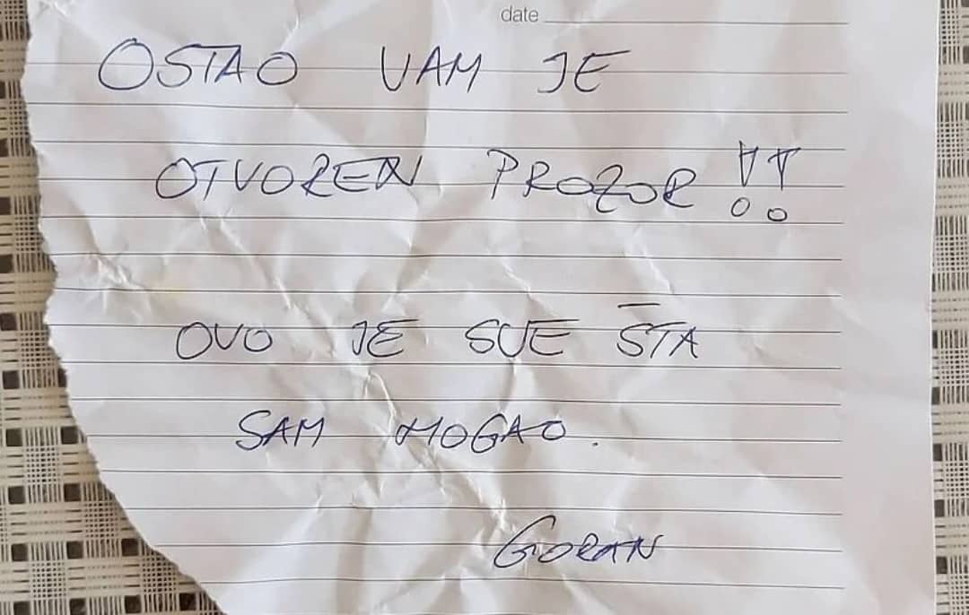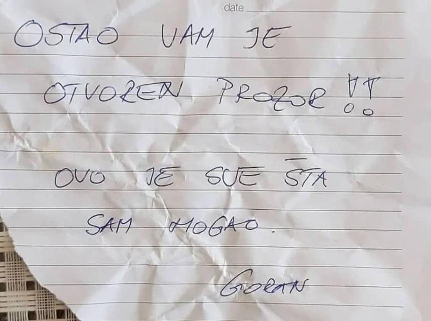 U poruci koju su pronašli na automobilu pisalo je: "Ostao vam je otvoren prozor. Ovo je sve što sam mogao".