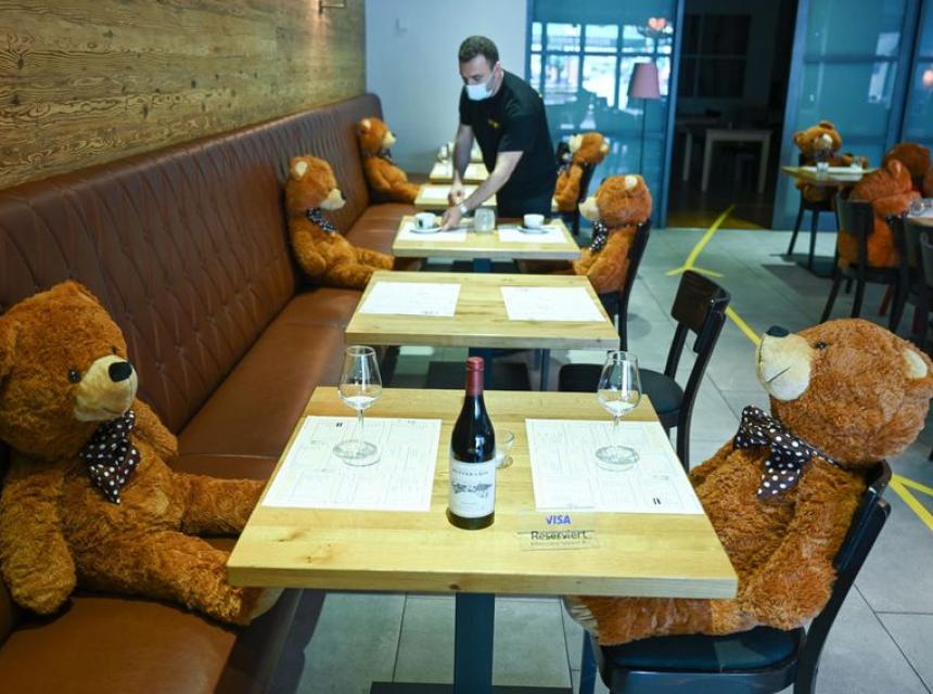 Da bi atmosfera u restoranu bila ugodnija, njemački ugostitelj posjeo je velike plišane medvjede za stolove koji bi zbog fizičkog distanciranja morali biti prazni.