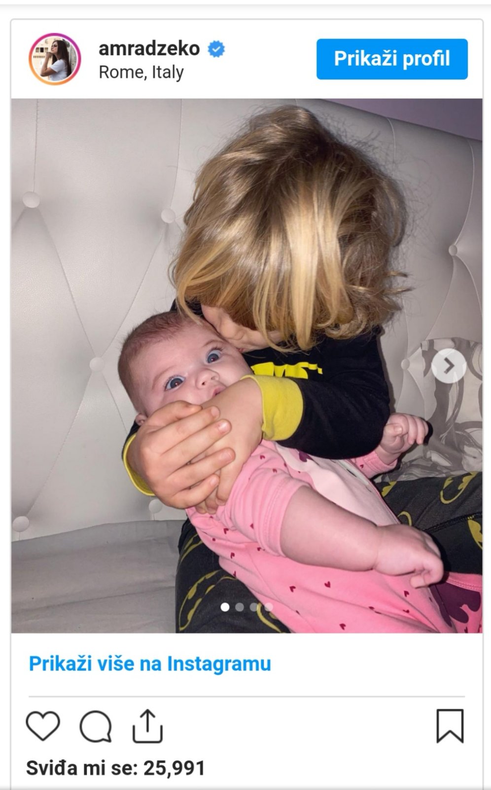 „Ljubav pršti na sve strane , Dalija je kao beba igračka, „Tako su ti slatki“, „Koji pogled“, Bože što su slatki- samo su neki od komentara ispod Amrine fotografije koju je objavila sa svojim pratiteljima.