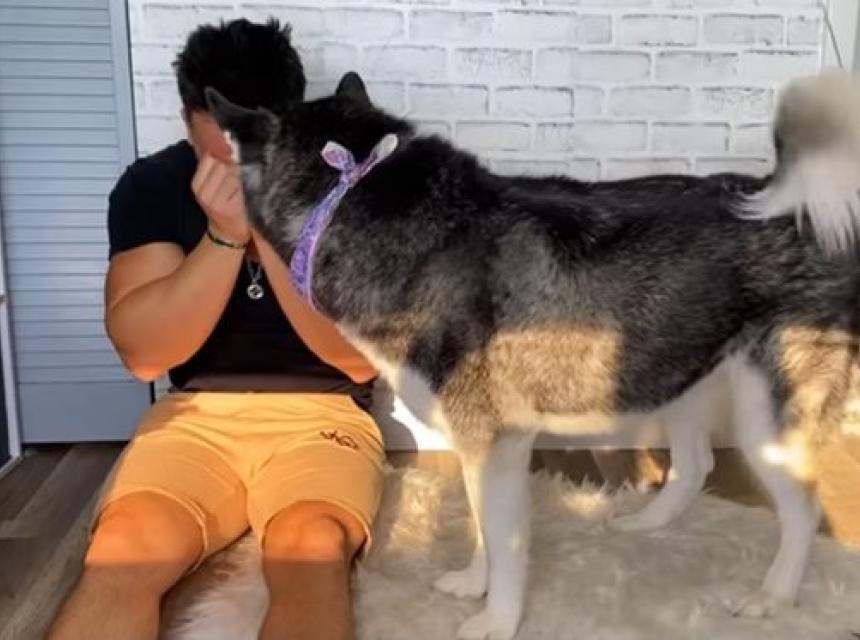 Jedan muškarac je odlučio snimiti reakciju svoje ljubimice Mike dok je on navodno plakao.