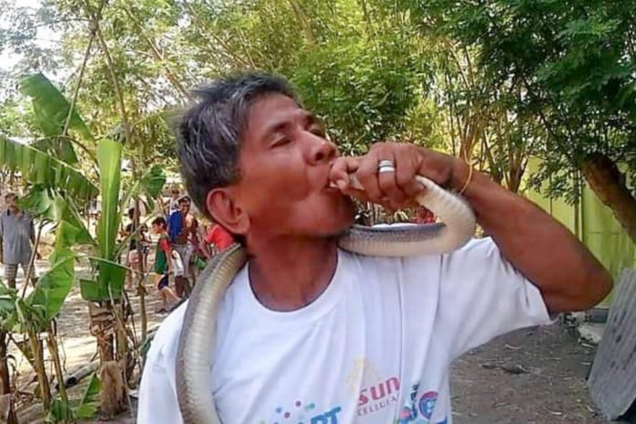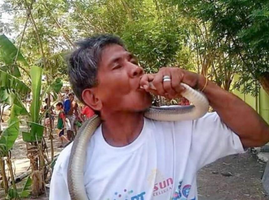 Međutim, dok je zmiju pokazivao okupljenima, Bernardo je držao kobru blizu usana kao da pokušava da je poljubi, ali kobra ga je napala i ugrizla za jezik.