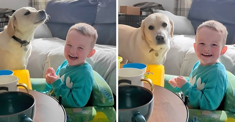 Dječak je razgovor započeo veselim usklikom, a pas je odgovorio zavijanjem. Mališana je odgovor psa nasmijao, stoga je odlučio uzviknuti još jednom, a pas je imao isti odgovor. Očito, nemamo pojma što govore, ali njihov razgovor je presladak.