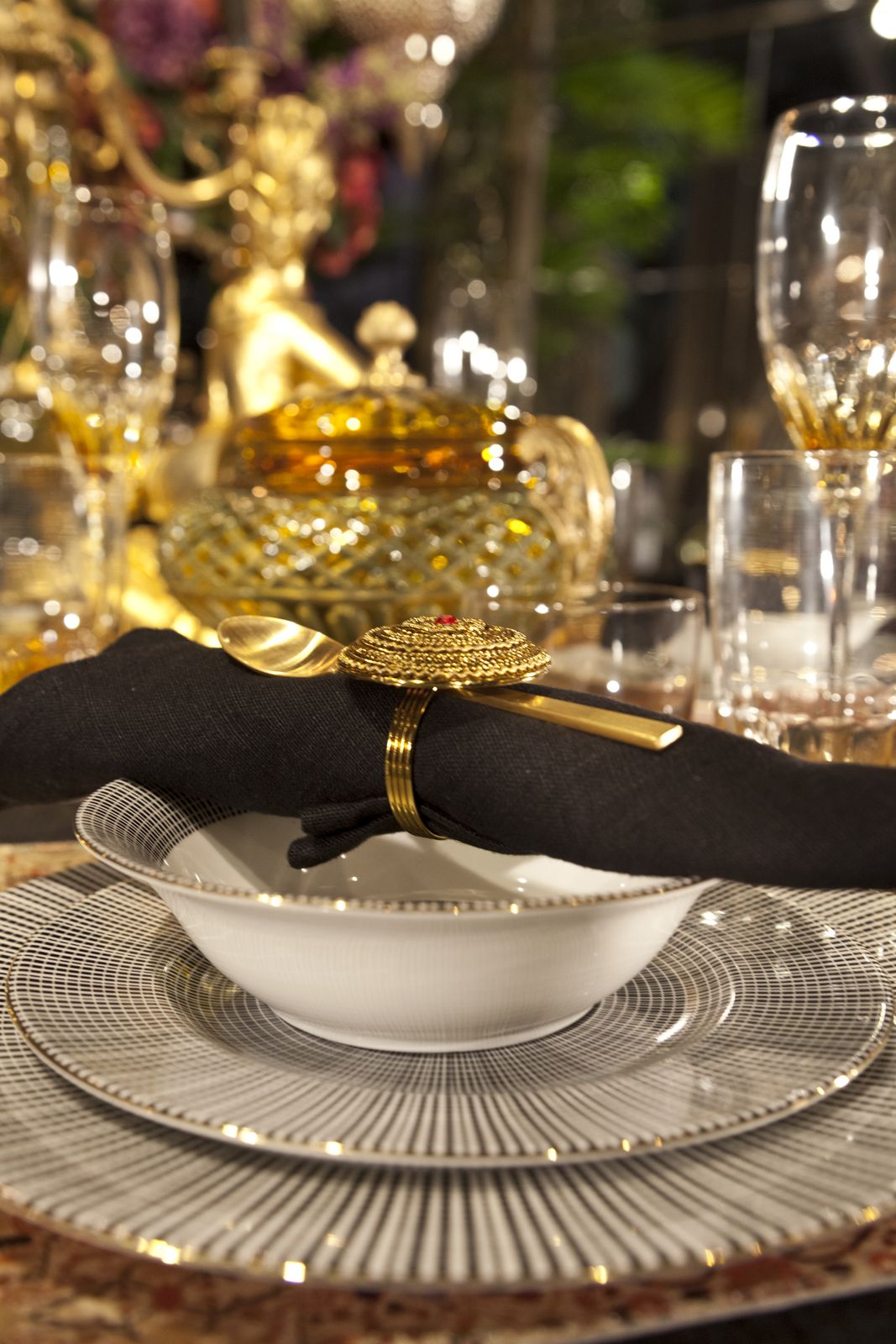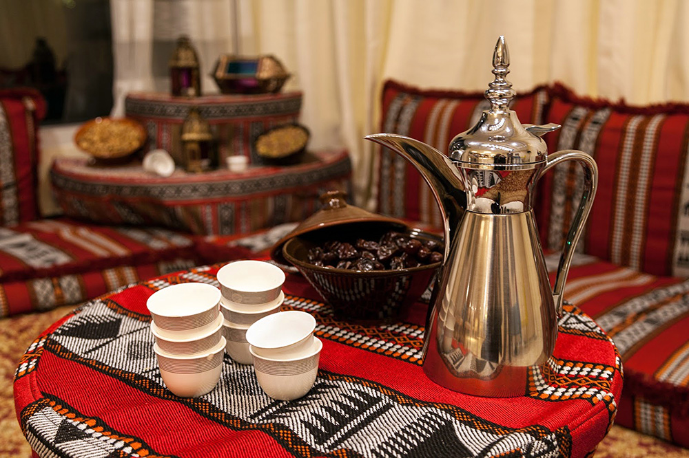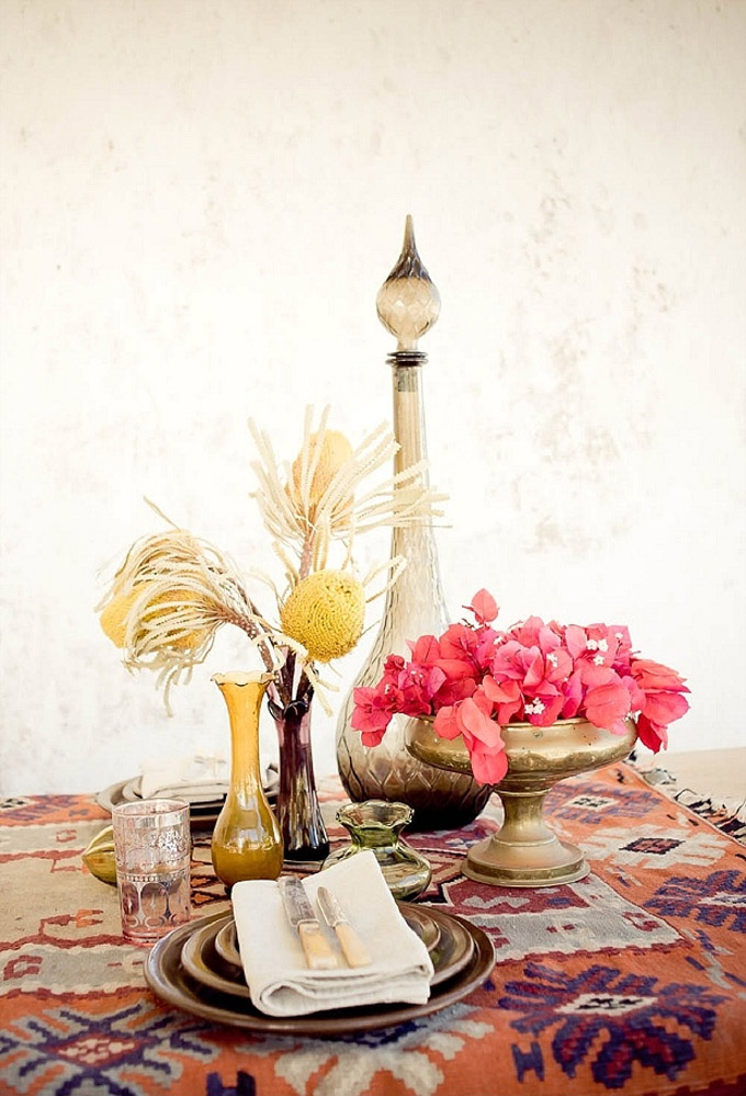 Umjesto stolnjaka, stavite tkanu prostirku s arapskim ornamentima. Odaberite servis od pečene keramike i lanene ubruse.