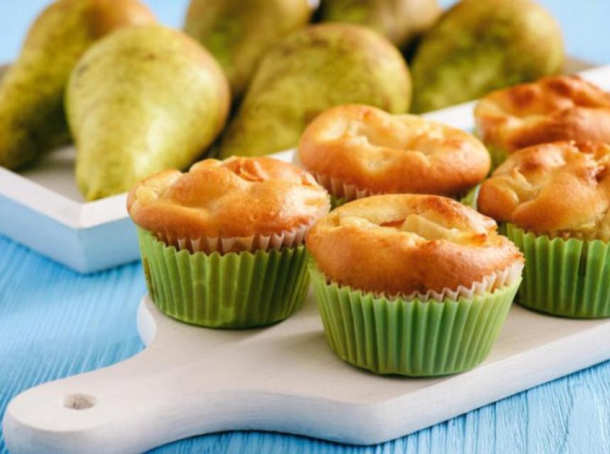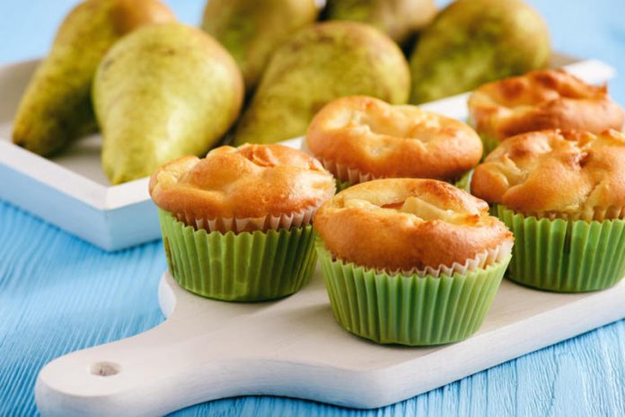 Dodaj nasjeckane kruške u posudu sa suhim sastojcima i ponovo promiješajte.
