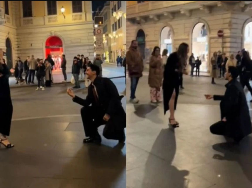U videu koji je pregledalo oko 14 miliona ljudi, u centru Rima može da se vidi mladi par kako romantično pleše uz italijansku muziku lokalnog uličnog pjevača. Momak po imenu Valerio odlučio je da u jednom trenutku prekine romantičan ples i klekne pred svojom devojkom. Iz džepa je izvadio vjerenički prsten dok su okupljeni prolaznici sa ushićenjem gledali i navijali.