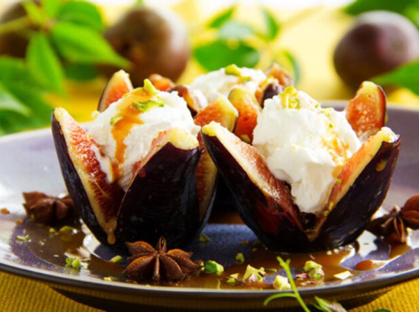 PRIPREMA: Oštrim nožem odsijecite peteljke, pa svaku smokvu rasijecite na četiri dijela. Prstima razmaknite dijelove da bi se u sredini napravila rupa, pa ih stavite u dublju tavu. Dodajte 1/2 šolje vode i kašiku brendija, pa kuhajte oko 7 minuta, neprestano prelivajući kašikom smokve vrelom vodom. Slatko vrhnje umutite sa šećerom i vanilom, pa skuhane i prohlađene smokve punite umućenim vrhnjem.