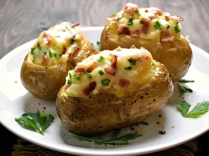 Na koži krompira treba da ostane oko 1 cm “mesa”. Sredinu pomiješajte u posudi s krem sirom i suhim mesom, pa time punite krompir.