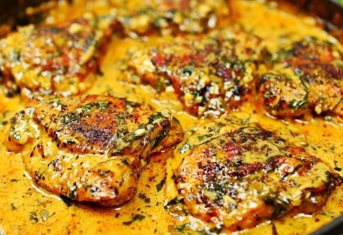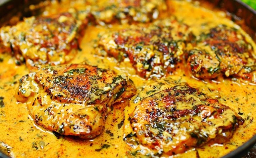 Pokrijte poklopcem i lagano dinstajte piletinu na laganoj vatri 50 minuta. Zatim maknite poklopac i pustite da se umak malo zgusne još 5 minuta. Poslužite piletinu s pečenim krompirom ili povrćem po izboru i uživajte.