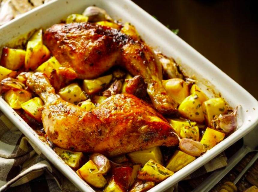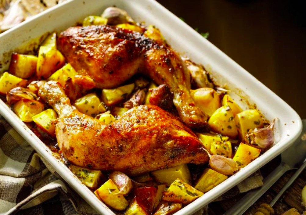 U posudi pomiješajte sve suhe začine, pa ubacite batake i dobro ih utrljajte. Na kraju dodajte izgnječen bijeli luk i sitno sjeckan crni luk i ostavite tako najmanje 15 minuta. U zagrijanu tavu sipajte ulje, pa spustite batake i pecite na dva minuta s obje strane. Ukoliko batake želite da jedete sa krompirom, ogulite ga, isijecite na kockice i stavite u podmazan pleh. Preko krompira poredajte batake. Pecite ih u zagrijanoj rerni na 200 stepeni oko 30 minuta. Okrećite ih s vremena na vrijeme. Kada su gotovi, batake premažite medom.
