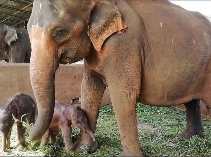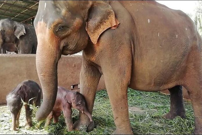 U glavnom sirotištu za slonove na Šri Lanci slonica je rodila blizance što je vrlo rijedak slučaj.
