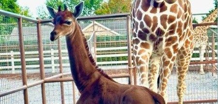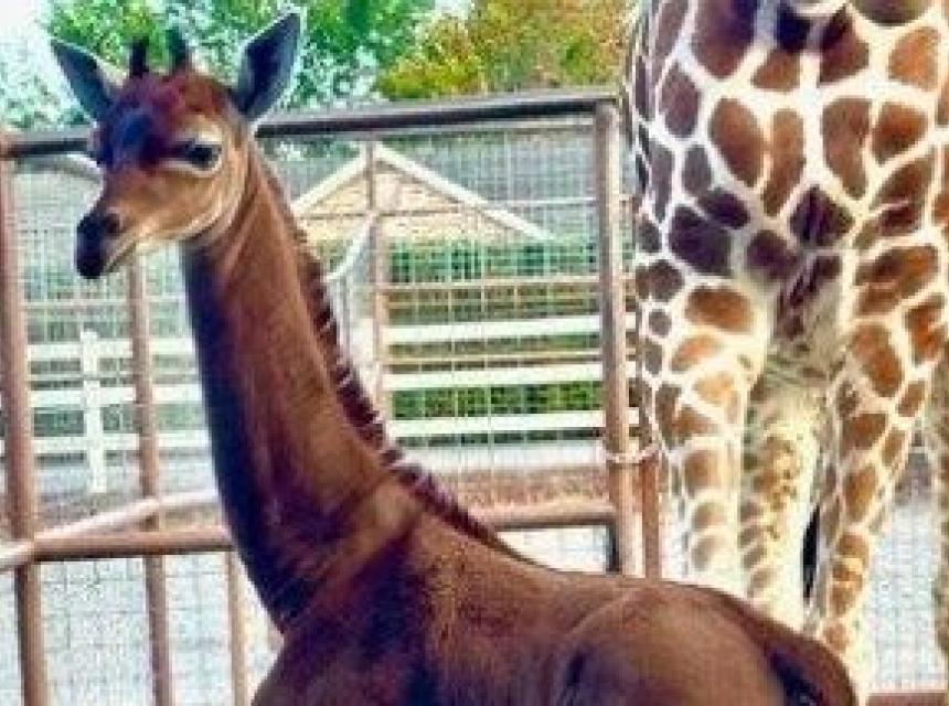 Ženka žirafe, rođena 31. jula, ujednačene je smeđe boje, bez karakterističnih šara po kojima su žirafe - zajedno sa svojim izuzetno dugim vratovima - poznate.