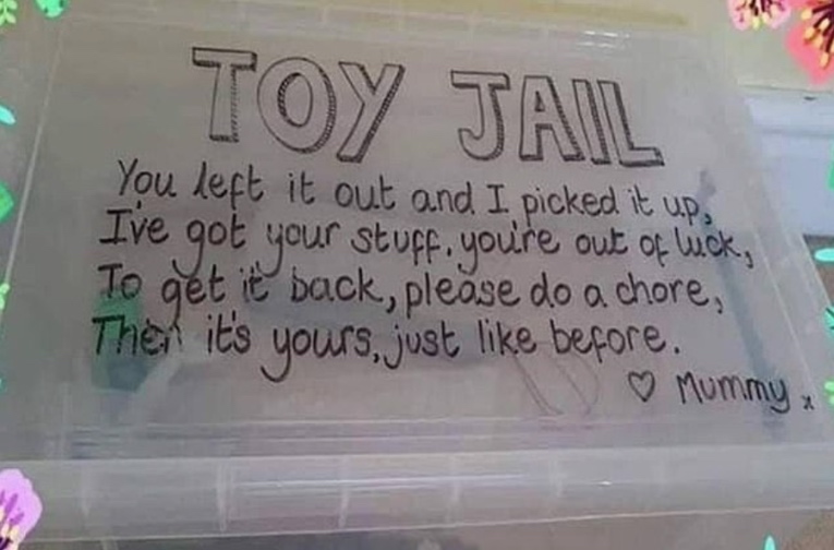 Naime, kad njezina djeca ostave igračke na podu, ona ih pokupi i stavlja u kutiju. Tek kad dijete odradi svoj kućanski zadatak i spremi sobu, može ih dobiti natrag.