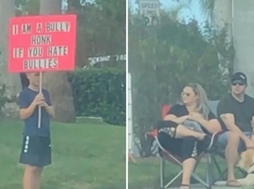 Odgojna metoda roditelja s Floride nije svima dobro sjela. Na TikToku je objavljena snimka dječaka koji stoji uz prometnu cestu s natpisom: "Ja sam nasilnik. Potrubi ako mrziš nasilnike."
