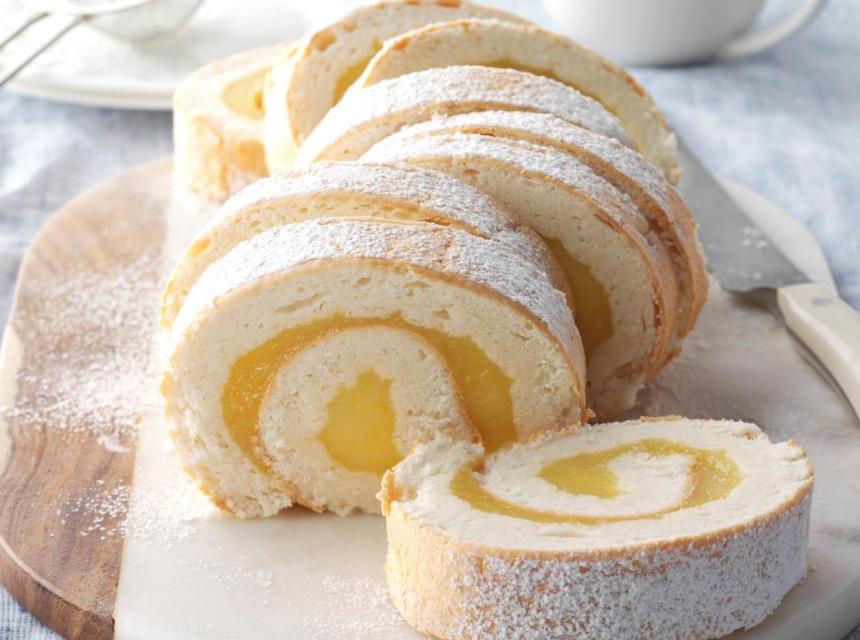 3. Limunov sok, šećer, vanilin šećer i gustin kuhati dok se ne zgusne. Kad se ohladi, umiješati u prethodno umućenu slatku pavlaku. Koru poprskati prelivom (70 ml vode i 20 ml limunovog soka), premazati filom i urolati. Ohladiti prije služenja.
