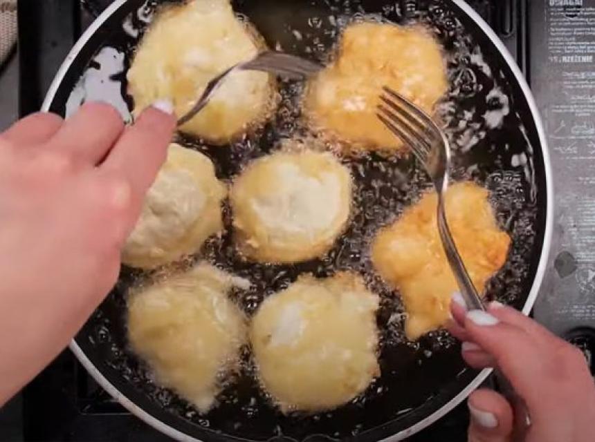 Potrebno vam je četiri sastojka koja sjedinite i kašikom vadite i na kraju sipate u zagrijano ulje.