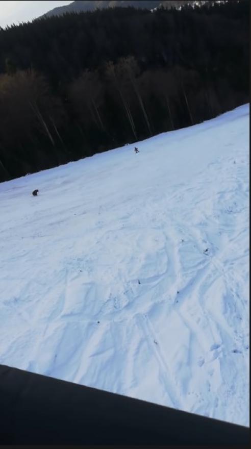 Jedan od skijaša je sa žičare snimio nesvakidašnji događaj u Predealu, poznatom rumunskom skijalištu. On je ugledao krzneno čudovište kako juri niz stazu pokušavajući da stigne mladića koji se spuštao.