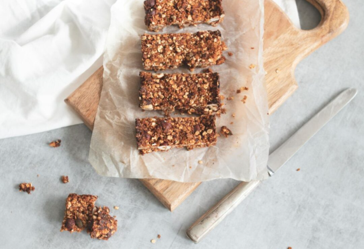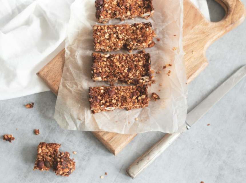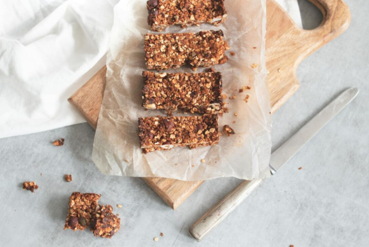 Dodajte mokru smjesu suhim sastojcima i miješajte dok se sve dobro ne poveže. Smjesu prebacite u pripremljenu tepsiju i čvrsto utisnite lopaticom, poravnavajući površinu.