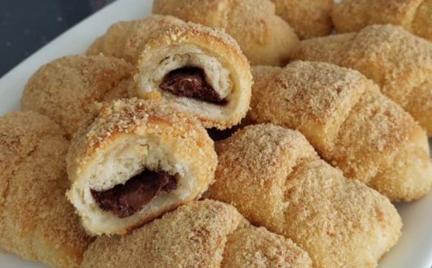 Dignuto tijesto podijelite na dva dijela, oblikujte u kugle, pa svaku razvaljajte na pobrašnjenoj površini u krug. Krug podijelite na osam ili više jednakih trokutova. Na širi dio svakog trokuta stavite malo Nutelle (ili drugog namaza), pa zarolajte u oblik kiflice. Ponavljate postupak i s drugom polovicom tijesta. Kiflice složite na lim obložen papirom za pečenje, pokrijte i ostavite još 20 minuta.