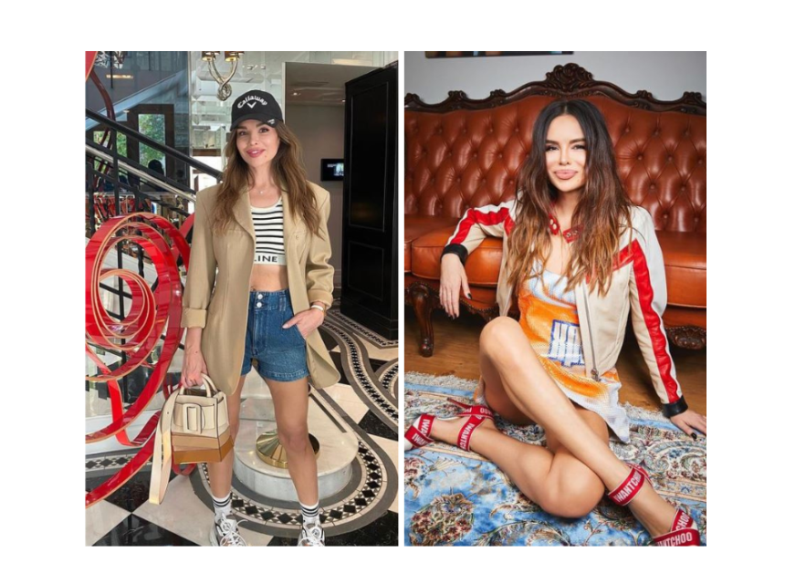 Obula je sportske tenisice i sokne, a na glavu stavila kačket. Dašak elegancije unijela je luksuznom torbicom.