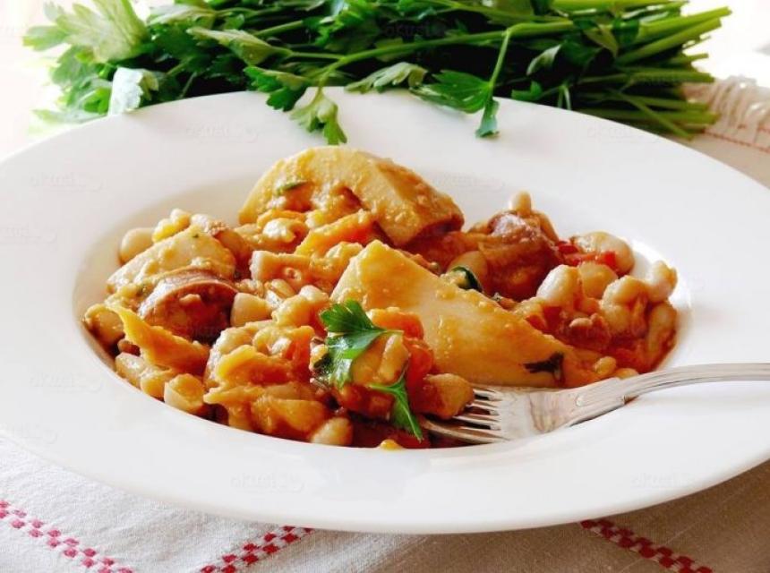 Kada je sipa kuhana dodati grah i ostaviti da se još malo krčka.