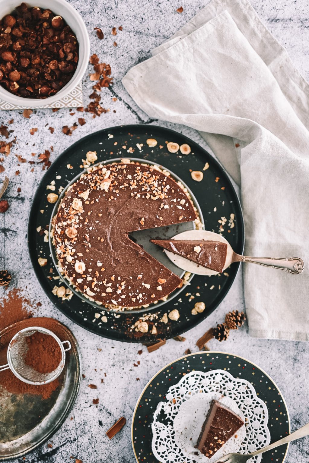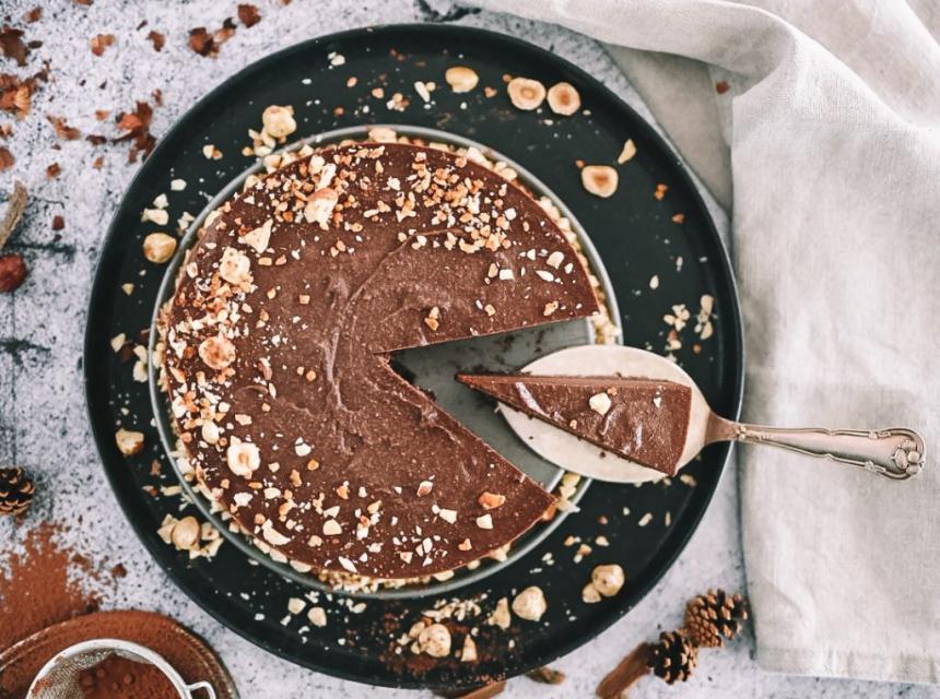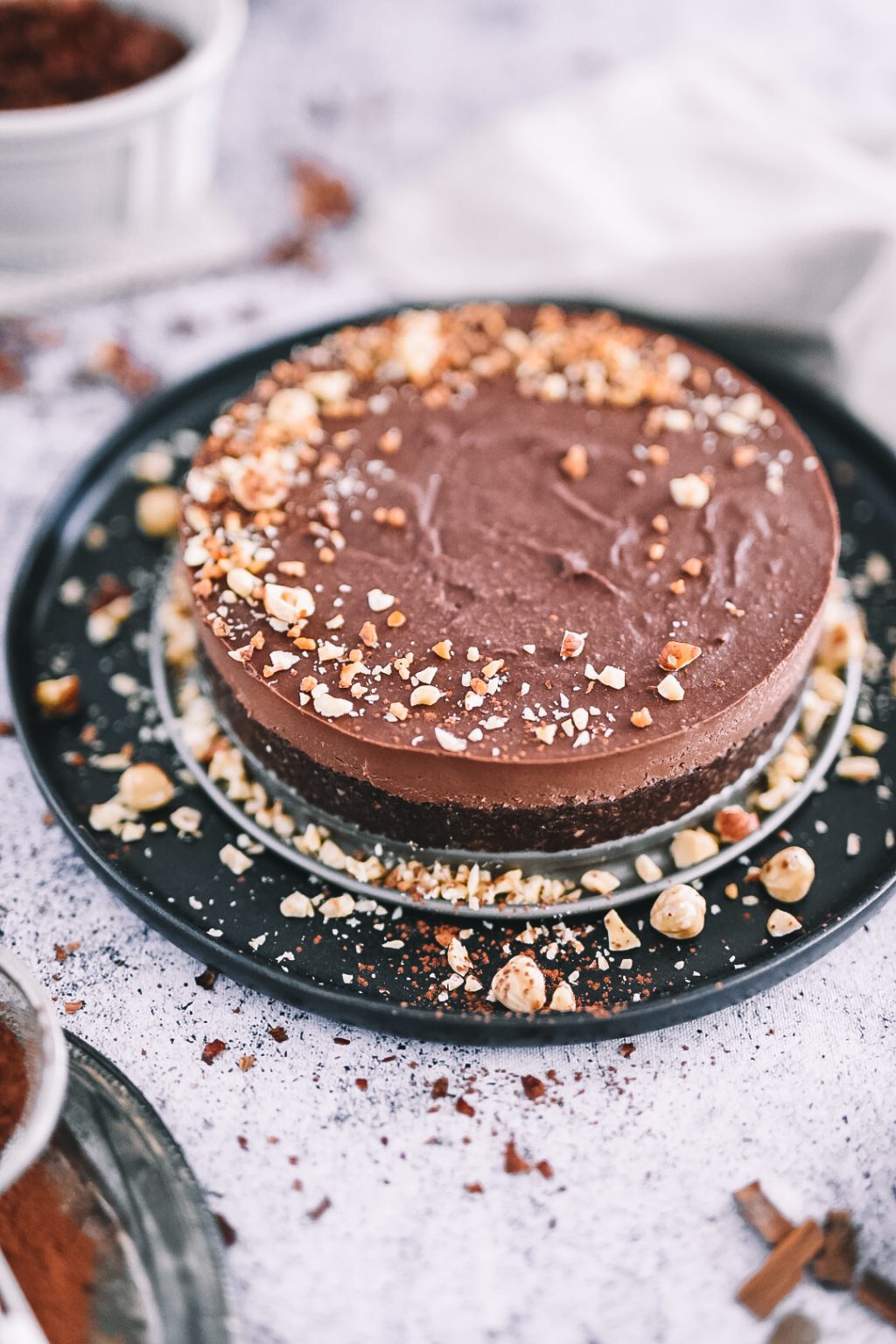 Lješnjake kratko sameljite u multipraktiku (ne predugo da se ne pretvore u maslac). Zatim dodajte sve ostale sastojke za podlogu i miksajte dok se ne sjedine.
