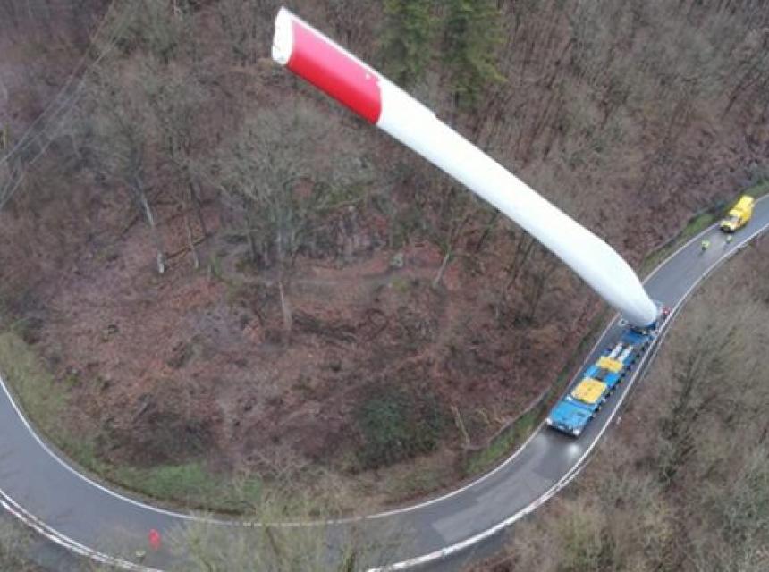 Za prevoz krila vjetroturbine pobrinula se špediterska kompanija P. Adams Schwertransporte, sa sjedištem u Luksemburgu, a fotografije poduhvata izazvale su veliko interesovanje na društvenim mrežama.