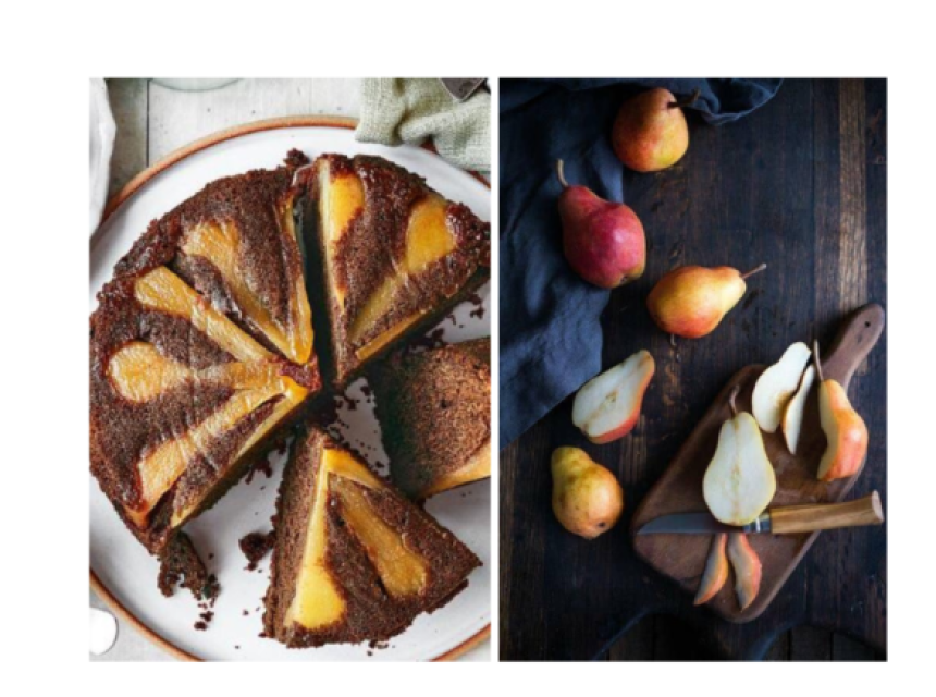 Priprema: Kalup obložiti papirom za pečenje. Rernu ugrijati na 180°C. Na pari otopiti čokoladu (ili u mikrovalnoj), maknuti s vatre i dodati maslac. Miješati dok se sve ne spoji u glatku masu. Dodati šećer i bademe/lješnjake, promiješati. Kada se ohladi umutiti tri žumanca. Kruške oprati i svaku narezati na šest do osam kriški. Umutiti bjelanjke u čvrsti snijeg i lagano umiješati u smjesu s čokoladom. Rasporediti masu u pripremljeni kalup i posložiti kruške. Peći 40 minuta, odnosno dok čačkalica ubodena u sredinu kolača ne bude suha. Prije rezanja ohladiti!