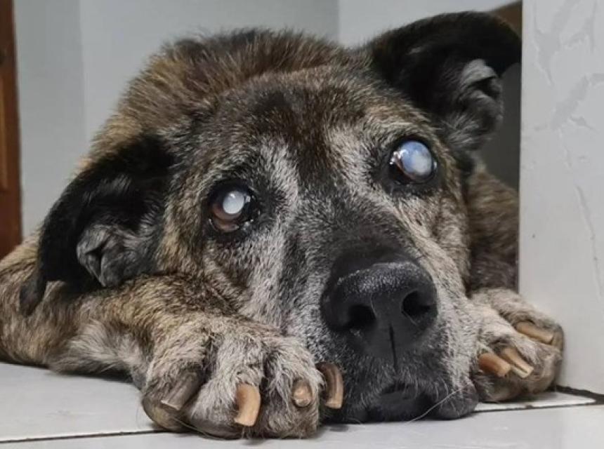 Portal Bored Panda piše da su radnici u skloništu mislili da će Tofu tamo provesti cijeli život. Pas je imao i rak, zbog čega su mu morali amputirati stražnju nogu, a od starosti je oslijepio.