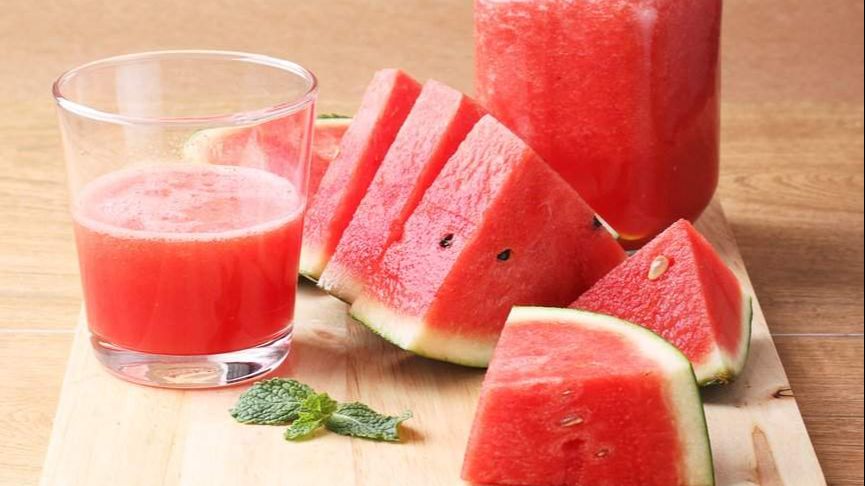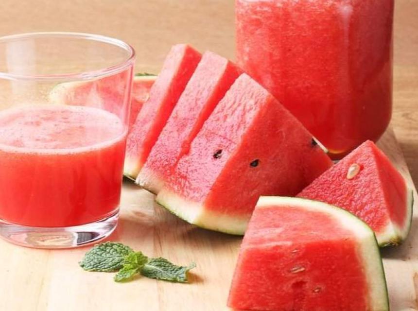 Sastojci: 500 g lubenice isjeckane na kockice i očišćene od koštica, 100 g jagoda, pola krastavca srednje veličine, 1 limun, led, nekoliko listića domaće nane.