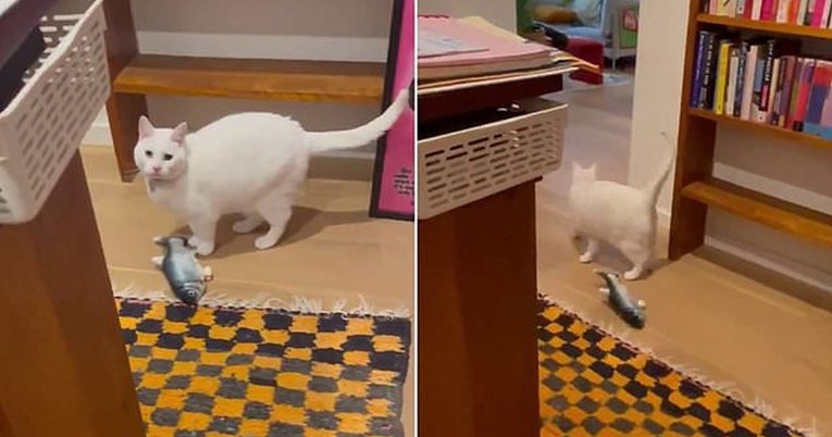 Mačka Carol igrala se sa svojom igračkom ribom, koja je najednom počela vibrirati. Kada je to primijetila, Carol je zastala i osluškivala.