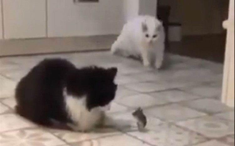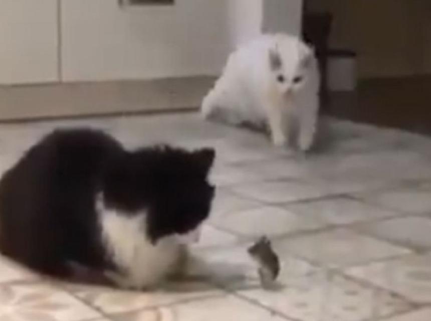 Ovaj muškarac snimio je svoje mačke u prijatnom društvu jednog miša. Čini se da su prilično nesigurne, jer pred njima neustrašivo trči po kuhinji.