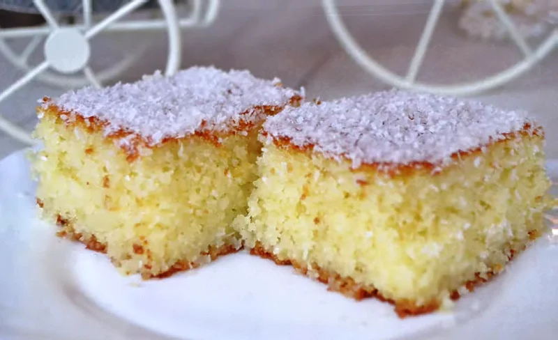Dok se kolač peče, napravite agdu od 200 grama šećera i 500 mililitara vode. Potrebno je da šećer kuhate pet minuta dok se šećer ne istopi. Ohlađen kolač narežite na kocke i prelijte agdom pa pospite kokosom.