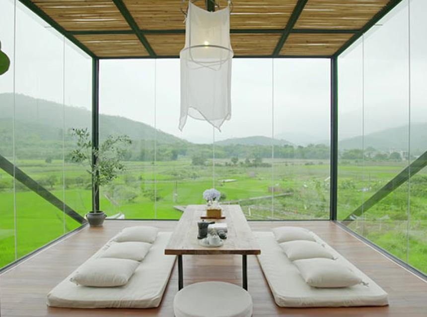 Sve žene dijele ljubav prema čaju, tako da je u njihovoj kući lijepi čajni paviljon koji je povezan s kućom drvenim podom. Veliko dvorište krasi veliki bazen i tradicionalni paviljon za čaj kojeg su podigle usred rižinog polja.