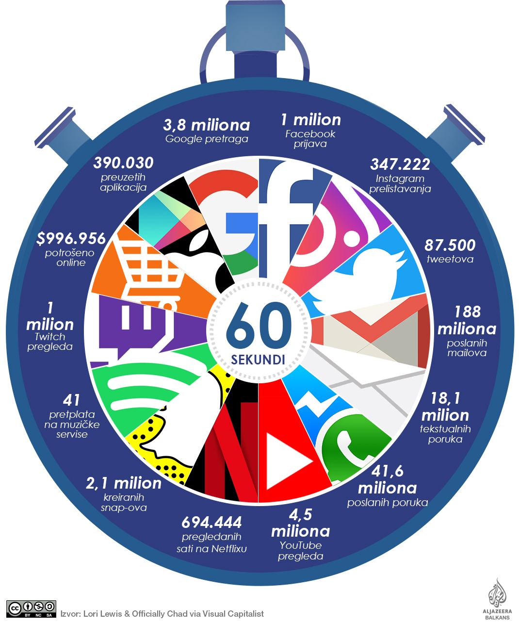 U infografici pogledajte šta se sve dogodi na internetu u 60 sekundi, prenosi Al Jazeera.
